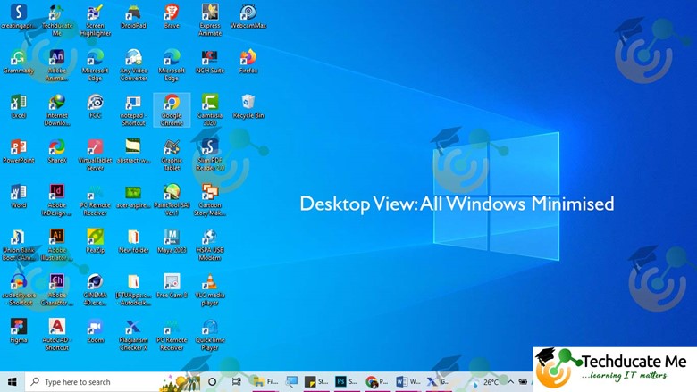 There are times you'd always want to minimize all the opened windows just to get access to your desktop view. In such instances, you need all programs minimized – including the program you're currently on – then just hit Windows and D. This will minimize all windows and bring you back to the desktop.