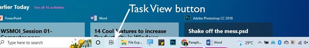 For you to see every open window and desktop, or create your own virtual desktop(s), simply click the Task View icon in the taskbar (see image below).