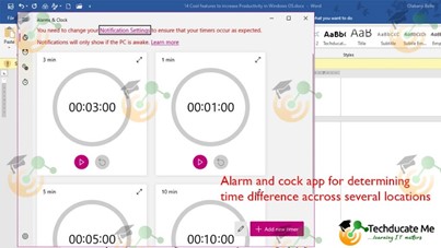 The Alarms & Clock app can predict the future to determine the time difference between two locations. To add locations, open the app, choose the Clock tab, and then select the addition (+) symbol at the bottom. To view the timeline, click the Compare symbol. The time changes on the map points as you navigate across the timeline, making it simpler for you to keep track of time zones.