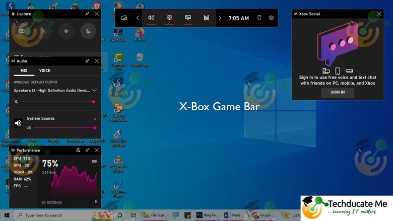 This secret recording capability can be used to capture other activities and applications in addition to recording game sessions. You could make a how-to video for a blog article, a simple way to send someone instructions, and so forth. You can open the Xbox Game Bar by pressing Win + G. This allows you to do a lot of things, such link third-party accounts, browse your Xbox friends list, manage audio, monitor CPU usage, record and broadcast your gaming sessions, and much more.